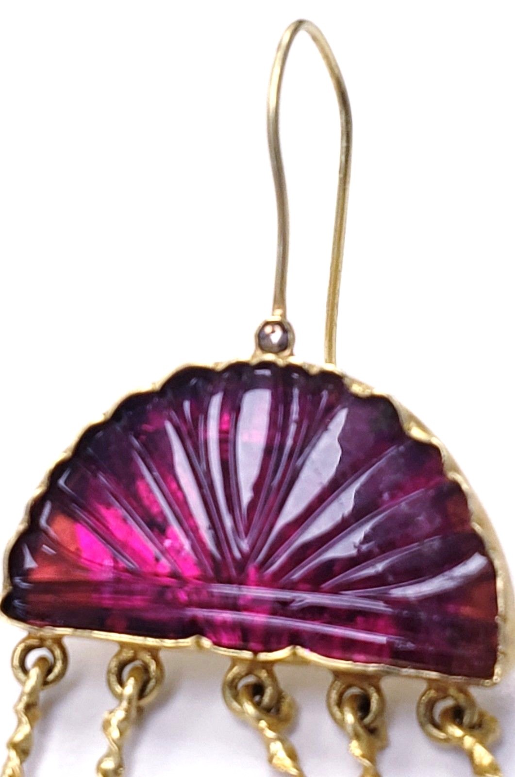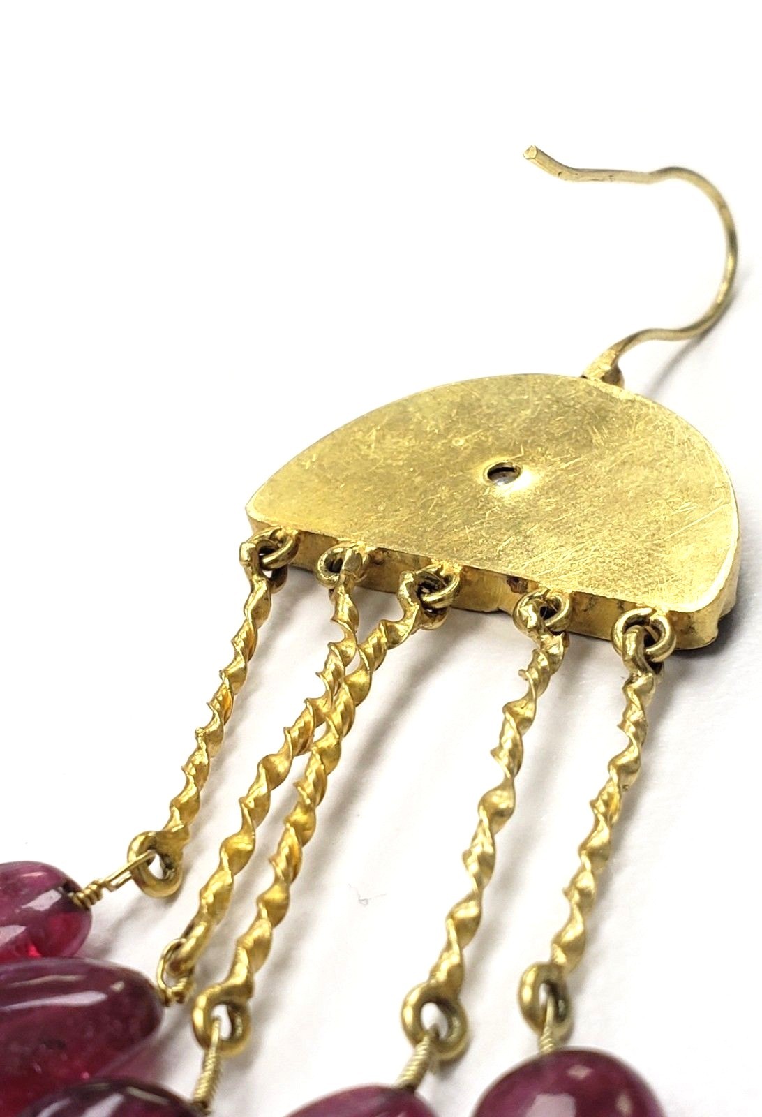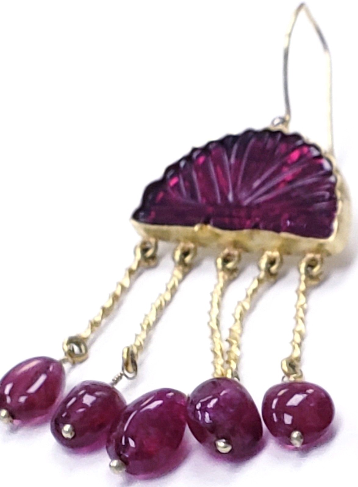 These beautiful earrings feature 40 carat of Rubi stones red color. 18K gold 17 gram.