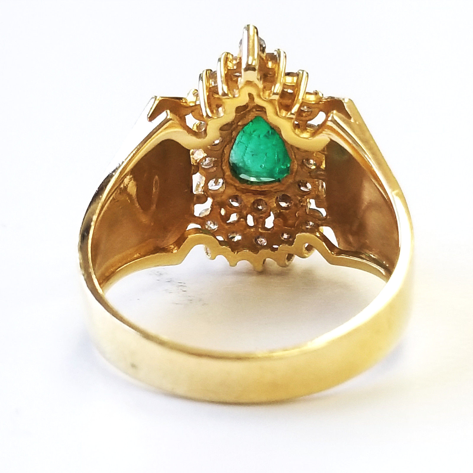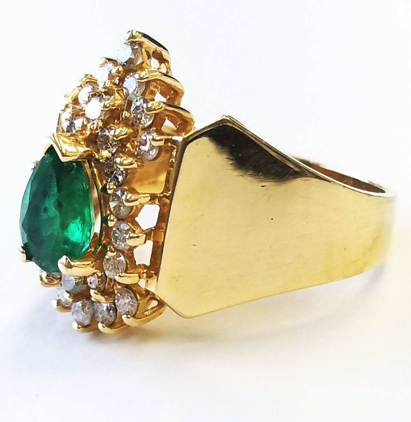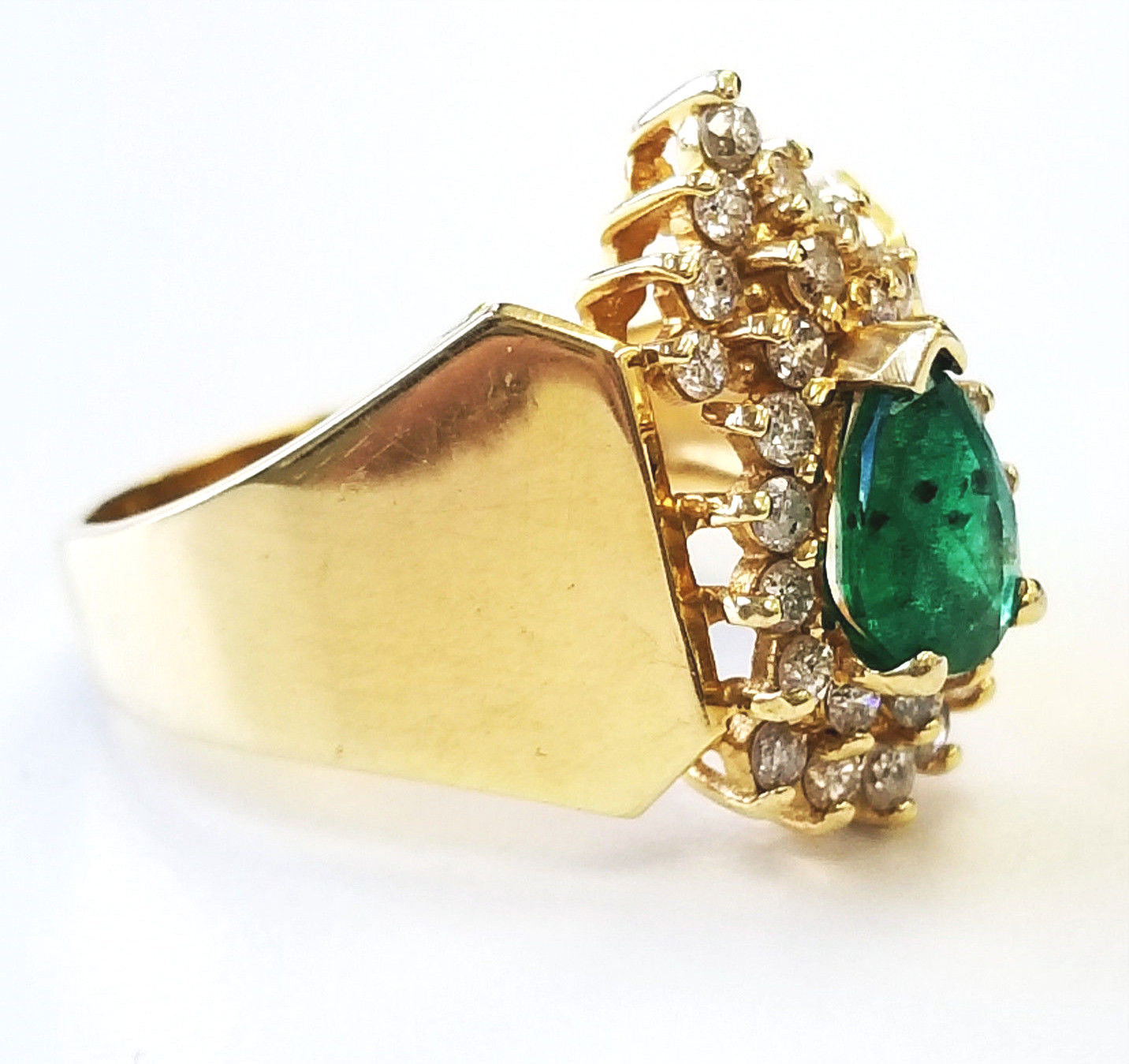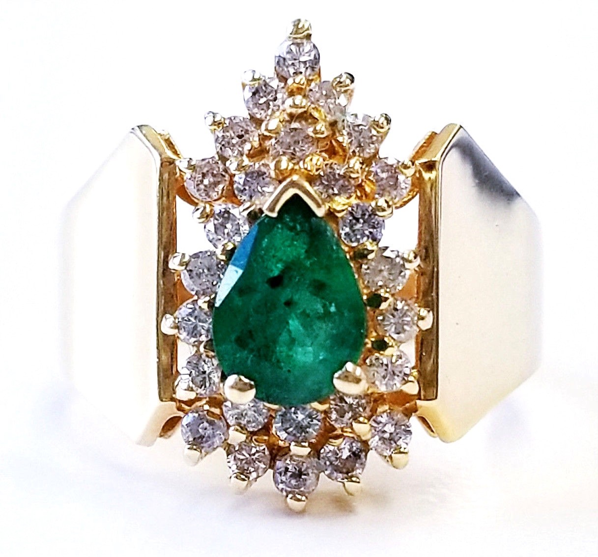 14K Yellow Gold Estate Diamond and Natural Emerald Engagement Ring Retail $5,000 This beautiful 14K Yellow gold ring features a 1 CT (+/-) Green Emerald Pear Cut center with small diamonds weighing 0.40 CTW on the side. The total weight is 1.40 CTW (+/-). Wear it out and light up any room with this brilliant ring, or wear it when you say "I do." This ring makes the perfect ring for any occasion!