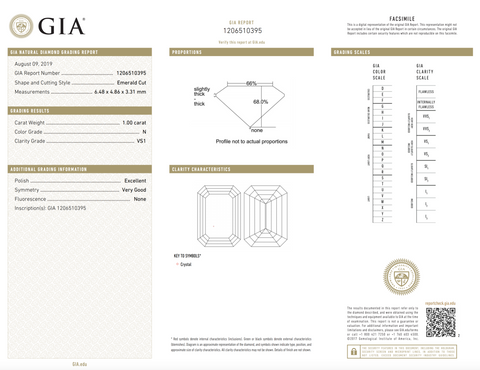 Real Diamond 1.00 CT Natural Loose Emerald Cut N Color VS1 Clarity GIA Certified