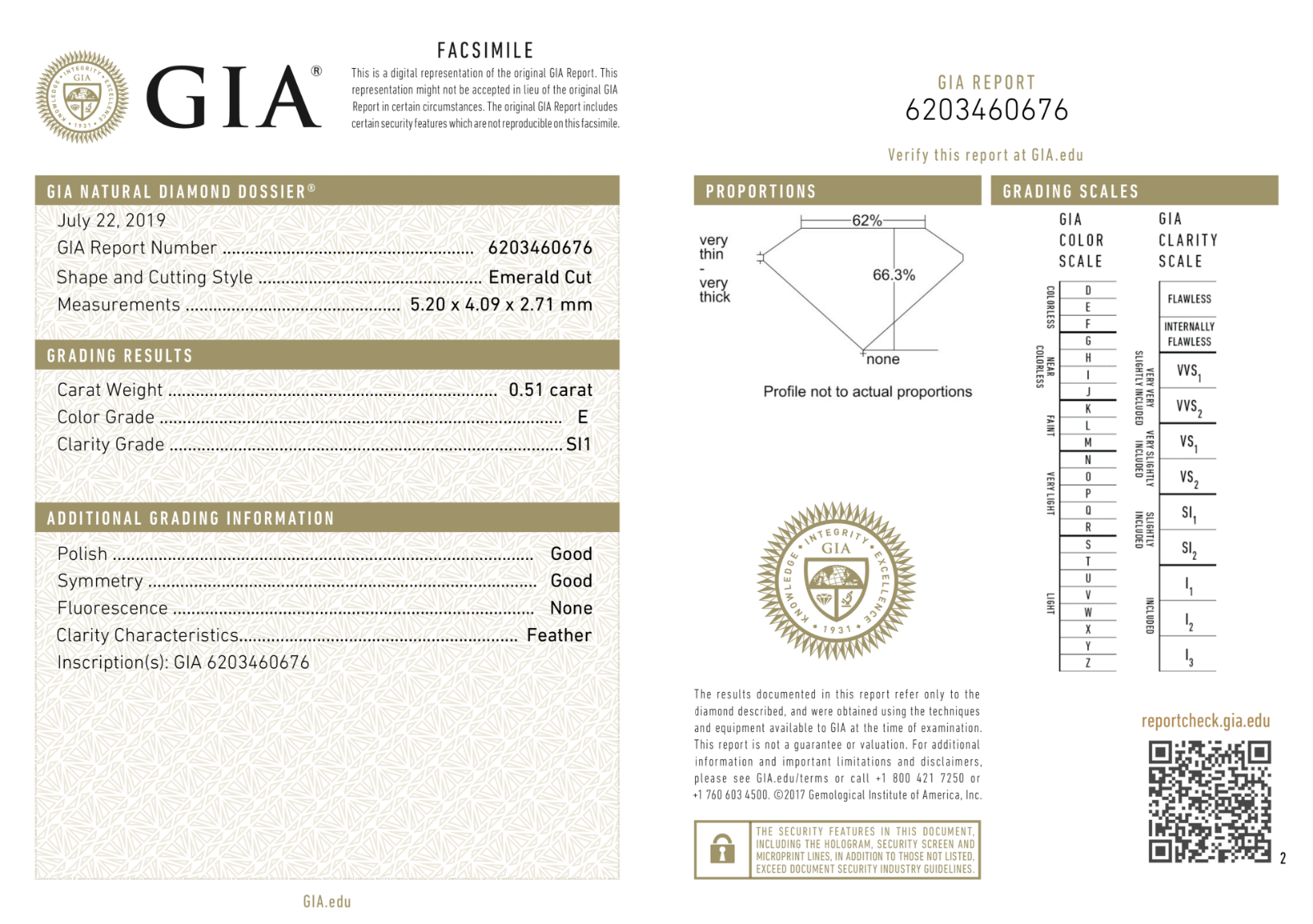 Diamond 0.51 CT Natural Loose Emerald Cut E Color SI1 Clarity GIA Certified